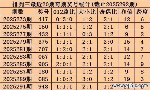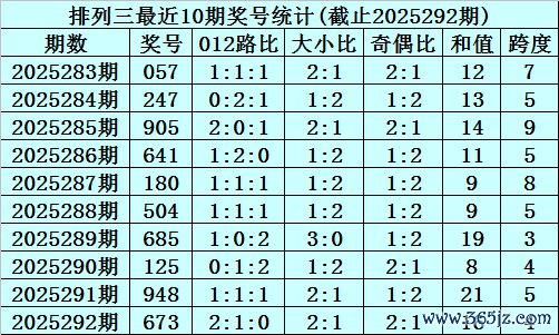 上期归来:成列三2025292期奖号为673,奇偶比为2:1,大小比为2:1,跨度为16。