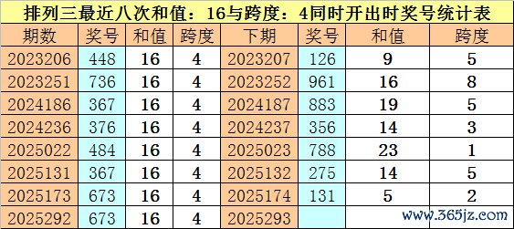 体彩罗列三最近八次同期出现和值:16与跨度:4的奖号分离为:448、736、367、376、484、367、673、673,前七次下期开出奖号分离为:126、961、883、356、788、275、131,详见下表:
